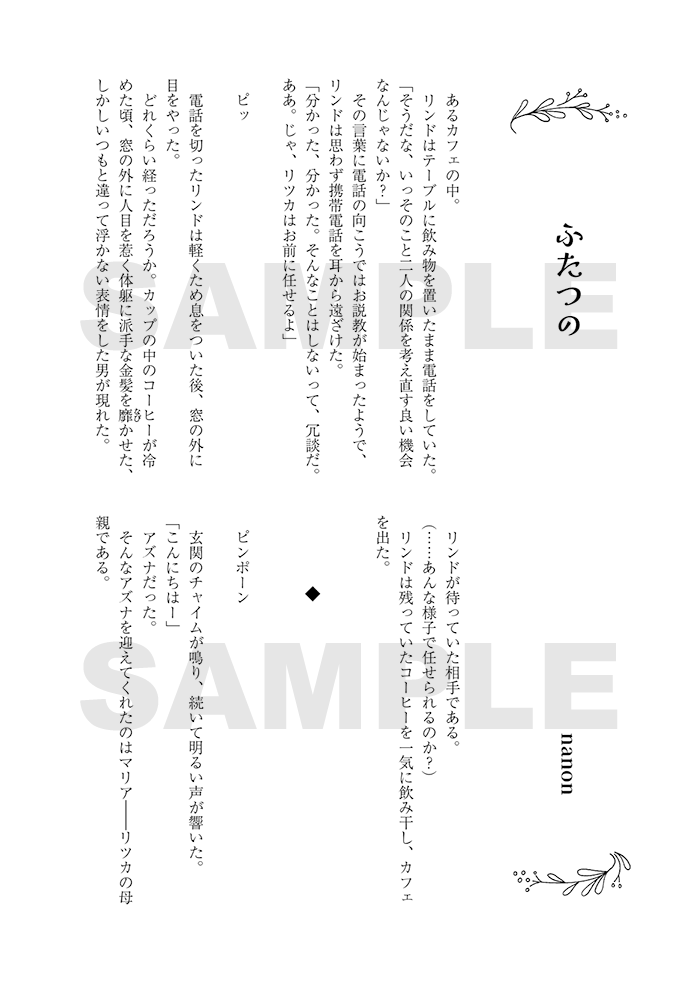- 掲載しているサンプル画像は見やすいようにノンブルの非表示や余白の調整を行っており、実際の印刷原稿とは異なる場合がございます。