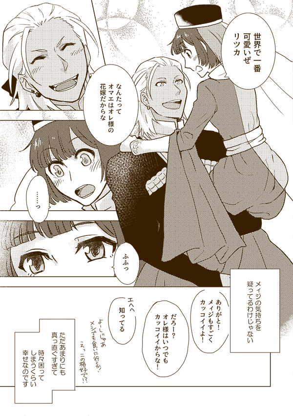 2017/2/17開催ラヴ♥コレクション2017 in Winterで発行したメィリツ合同誌に向けて描いたメィリツ+リンドの漫画です。